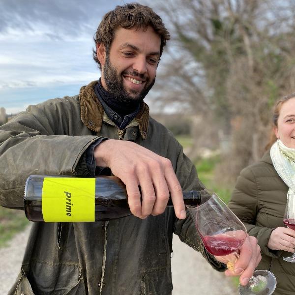 Prime, des Frères Soulier, c'est le vin de soif incarné d'une fraîcheur désaltérante à souhait. Si vous aimez les vins à la teinte rouge clair, voire rosé, éclatant de fruit et de haute buvabilité, c'est pour vous. Du fruit et une fine trame de tanins qui croquent le creux des joues, on a toujours envie d'y revenir. Les arômes délicatement nuancés donnent le ton sur la touche unique des vignerons du Gard. Cuvée de négoce des Frères Soulier, les raisins sont de David Teyssier de la Ferme du Cade et les frangins s'occupent des vinifications et de la mise en bouteille. 1,2,3 et hop, il n'y en a plus. Premier arrivé, premier servi!